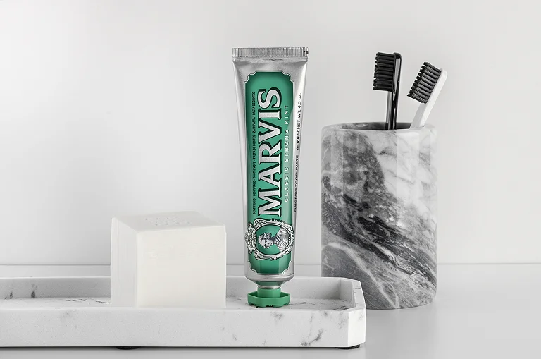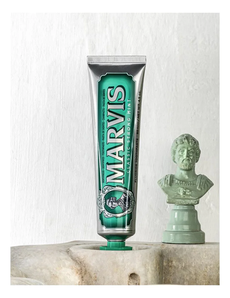 خمیر دندان مارویس مدل نعنایی قوی کلاسیک MARVIS CLASSIC STRONG MINT به ایجاد احساس تمیزی در دهان خیلی معروفه. این حس Fresh شدن دهان و خوشبویی نفس، تا ساعت ها ماندگاره. اما فوق العاده تر از حسش، اینه که با ترکیبات تخصصی و امنی که داره دقیقا همینقدر دندان ها رو تمیز میکنه.